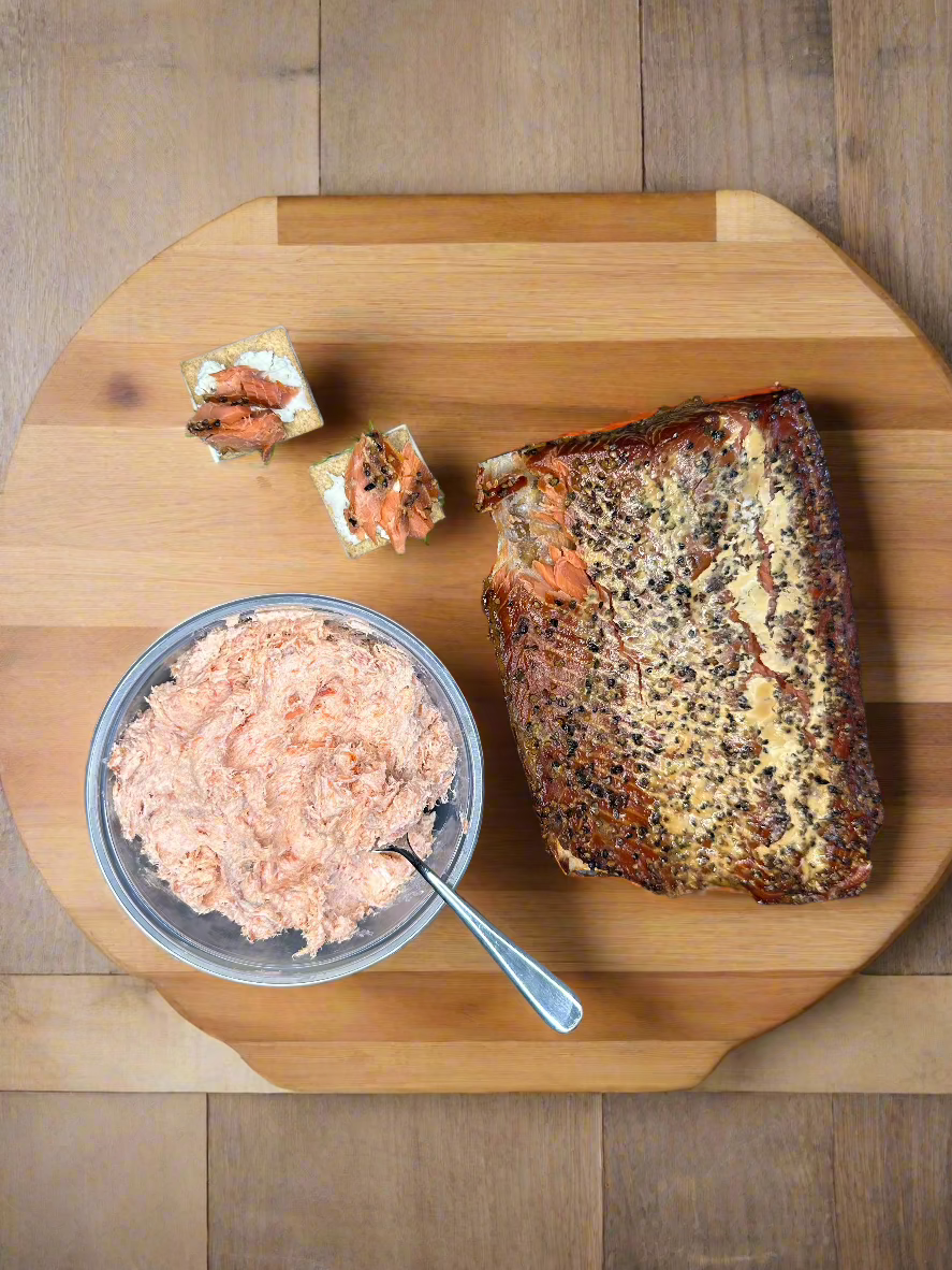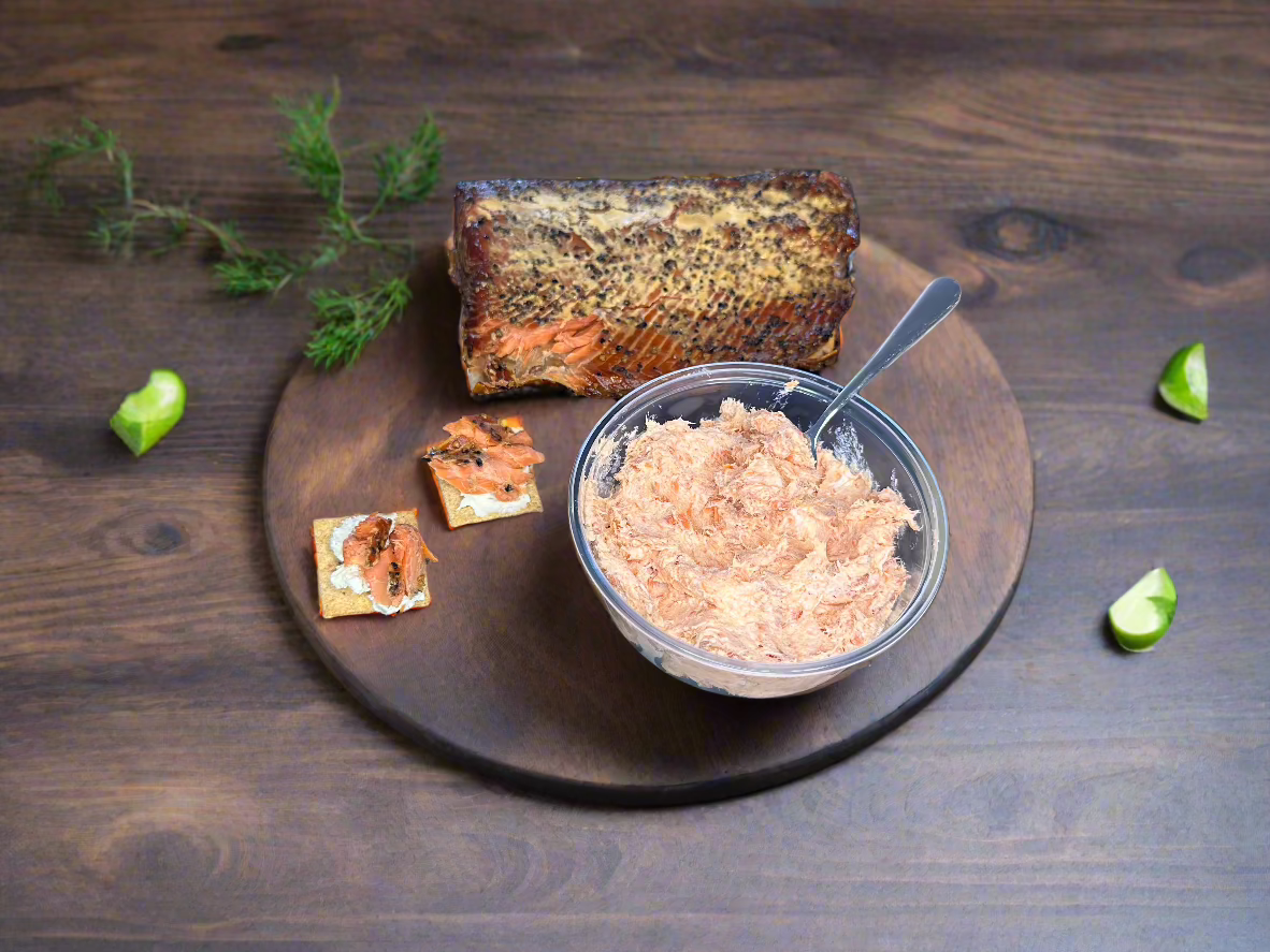 - Ingredients: Smoked salmon (Alaskan sockeye salmon, salt, sugar, hardwood smoke), cream cheese, olive oil.